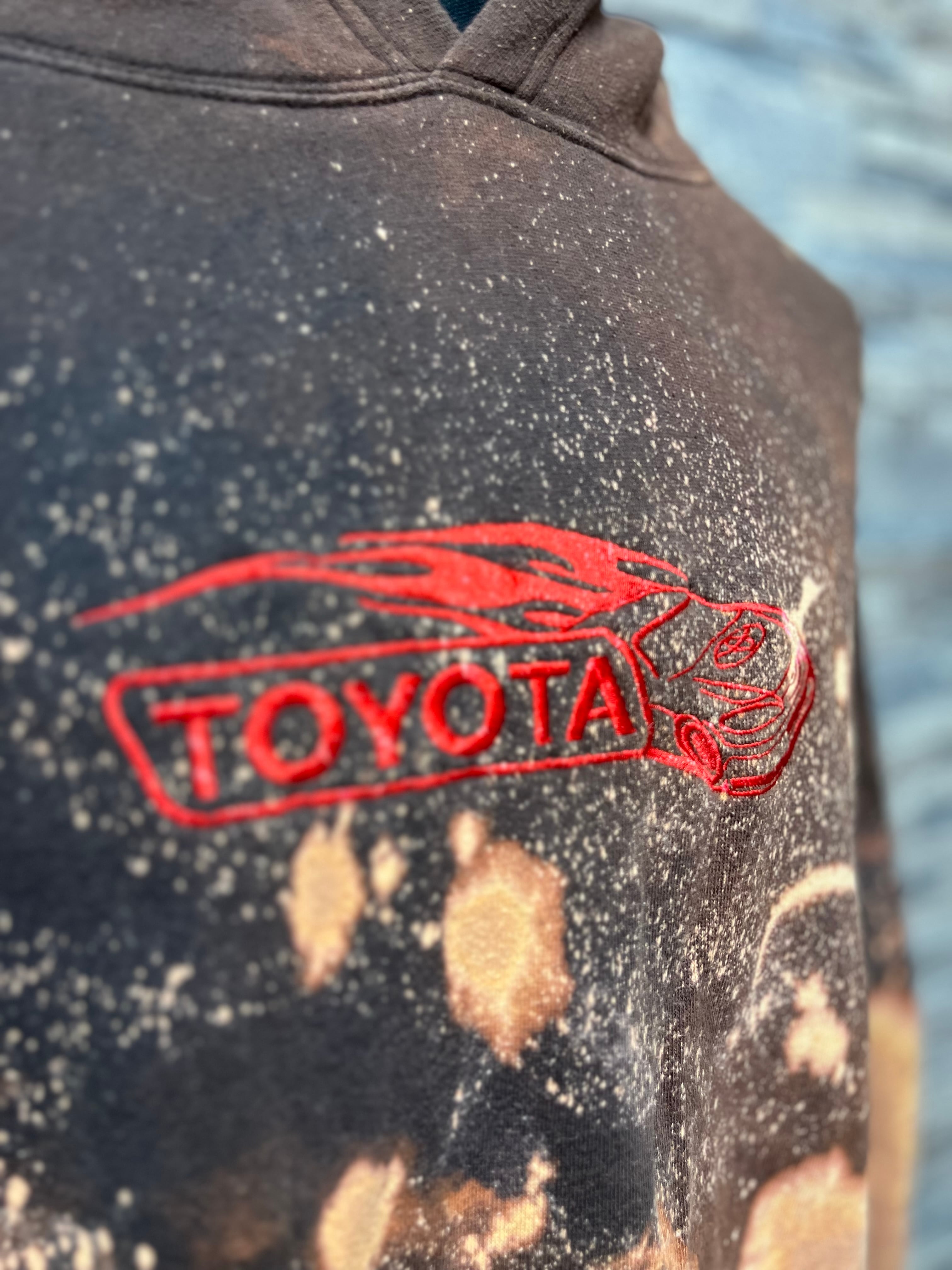 赤いトヨタロゴが目を引くフードスウェット。
